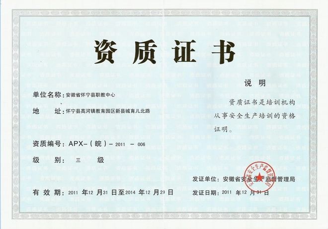 省級安全培訓(xùn)機構(gòu)資質(zhì)證書