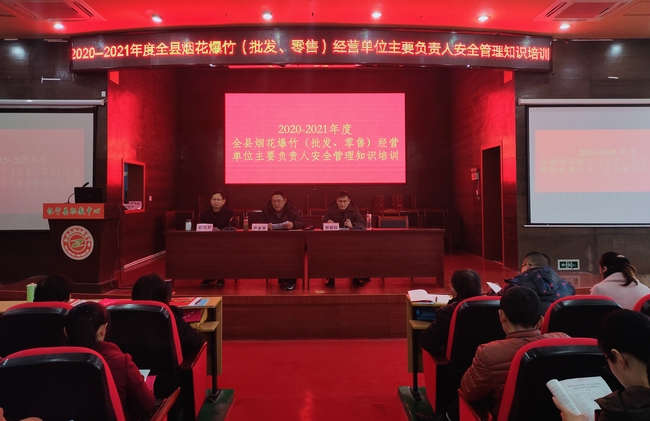 11月30日-12月5日,安徽省懷寧縣職教中心(安慶市宜城科技學(xué)校)開展2020-2021年度懷寧縣煙花爆竹經(jīng)營單位主要負責人安全管理知識培訓(xùn)班,本期培訓(xùn)班全縣20個鄉(xiāng)鎮(zhèn)1060余人,分為三個批次分別進行培訓(xùn)??h應(yīng)急管理局副局長產(chǎn)豐平、?;晒砷L郝敬權(quán)等出席開班儀式。開班儀式由該校校長郝浩軍主持,產(chǎn)豐平局長做開班儀式講話。