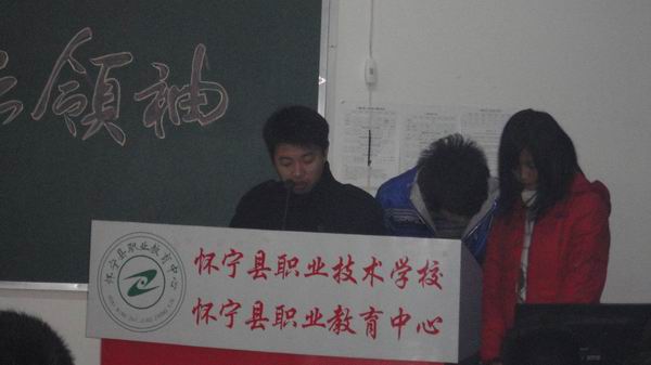 學(xué)生會、團總支、創(chuàng)業(yè)協(xié)會、環(huán)保協(xié)會四大組織負(fù)責(zé)人在大會上致賀詞