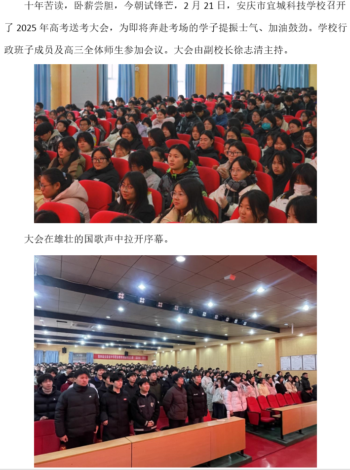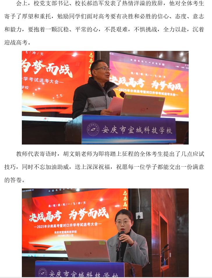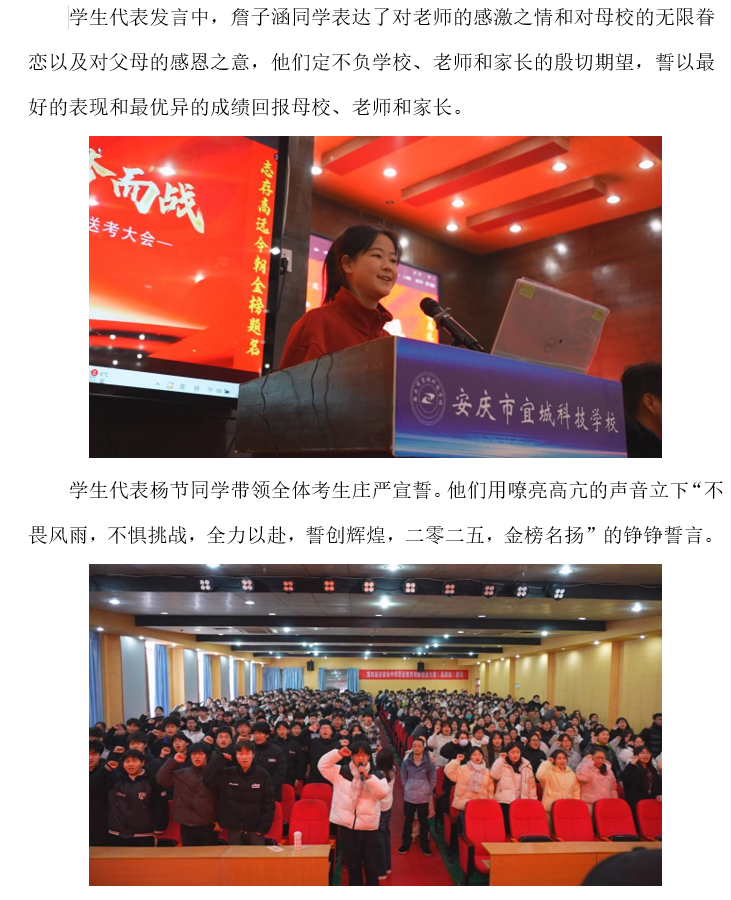 決戰(zhàn)高考 為夢而戰(zhàn)——安慶市宜城科技學校召開2025年高考送考大會