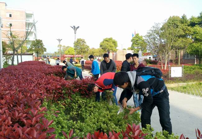 懷寧縣職教中心開展“清除雜草,美化校園”主題活動