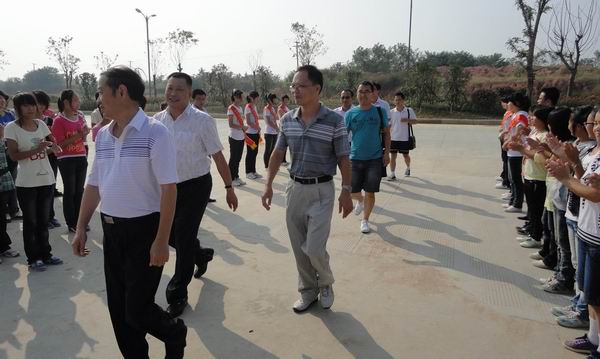 全校師生列隊,熱烈歡迎渝州科技學院領導蒞臨我校指導工作!