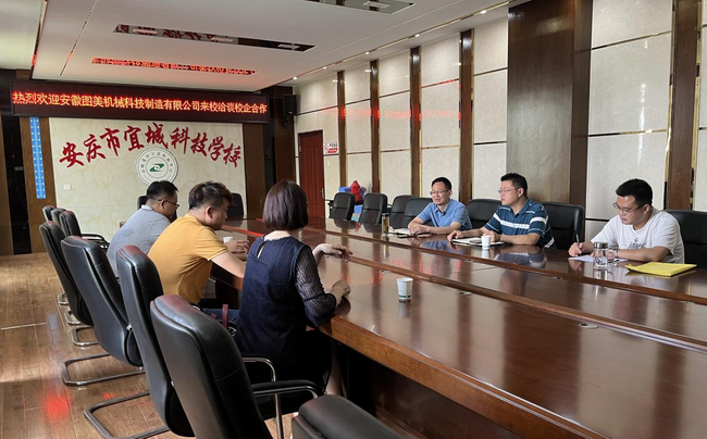 7月下旬,在懷寧縣市場(chǎng)監(jiān)督管理局副局長(zhǎng)陳金華和石牌鎮(zhèn)副鎮(zhèn)長(zhǎng)陳翀的帶領(lǐng)下,安徽?qǐng)D美機(jī)械科技制造有限公司蘇總等一行應(yīng)邀蒞臨安慶市宜城科技學(xué)校參觀考察,該校組織召開(kāi)了校企合作洽談會(huì),校長(zhǎng)郝浩軍主持會(huì)議,縣教育局黨委委員戴楊春出席會(huì)議。