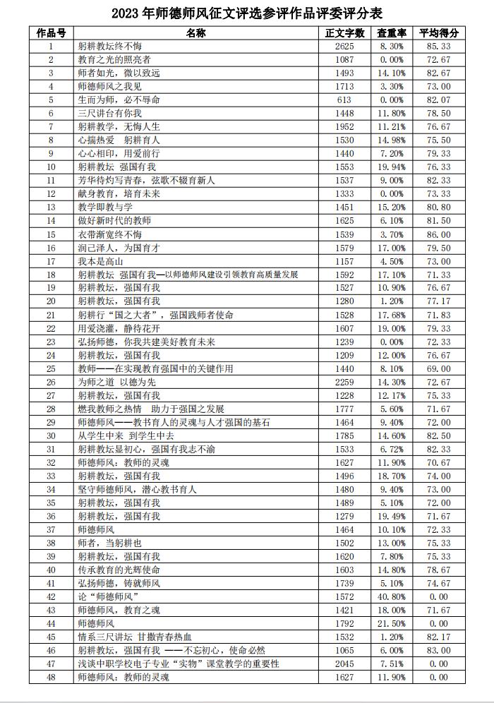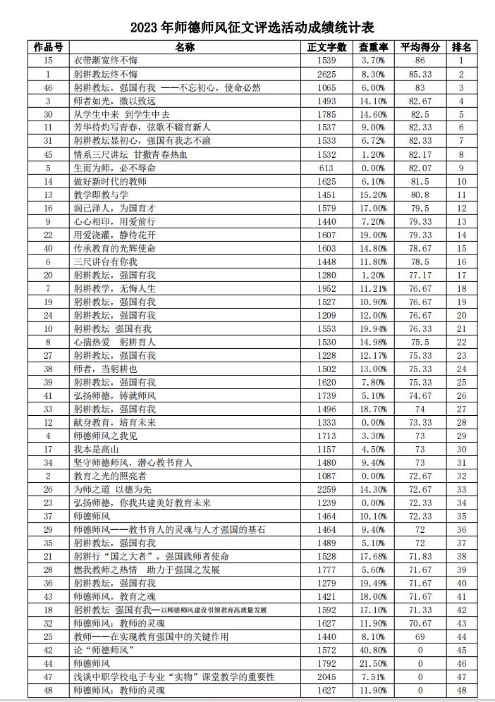 師德師風(fēng)-“躬耕教壇,強(qiáng)國(guó)有我”師德師風(fēng)征文評(píng)選結(jié)果公示