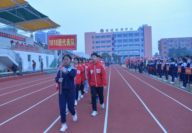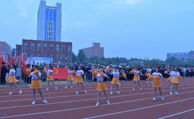 致辭結束,各班運動員代表隊精神飽滿、步伐矯健、口號嘹亮,闊步有序通過主席臺,接受領導和全校師生的檢閱。期間部分代表隊還根據(jù)各自的專業(yè)特色進行創(chuàng)新的黃梅戲、啦啦操等精彩的舞蹈表演展示。